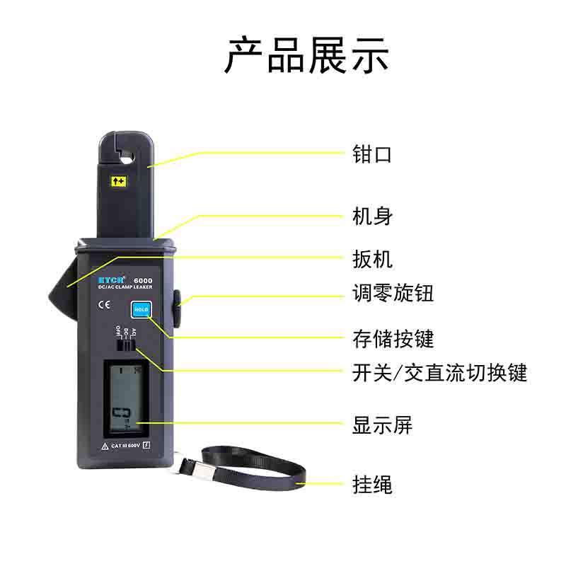 ETCR6000直流/交流鉗形漏電流表又稱弱電流鉗表,用于測量交流/直流電流、漏電流。儀表采用霍爾感應及數(shù)字集成技術,非接觸測量,無需斷開線路,快速、安全、可靠。廣泛適用于電信機房電流檢測、電力檢修、氣象、油田檢測等行業(yè)。