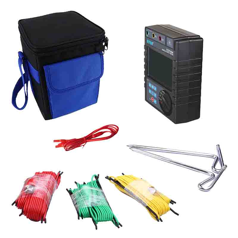 ETCR3000數(shù)字式接地電阻測(cè)試儀由主機(jī)、測(cè)試線等組成。具有獨(dú)特的線阻校驗(yàn)功能,對(duì)現(xiàn)場(chǎng)低值接地電阻測(cè)量更精確,能避免因測(cè)試線長(zhǎng)時(shí)間使用線阻變化引起的誤差;能避免因測(cè)試線未完全插入儀表接口或接觸不良引起的誤差;能避免因用戶更換或加長(zhǎng)測(cè)試線引起的誤差等。儀表采用超大LCD顯示,白屏背光,棒圖指示,一目了然。存儲(chǔ)400組數(shù)據(jù),具有最大、最小、平均值指示,具有歷史數(shù)據(jù)讀取、查閱等功能。