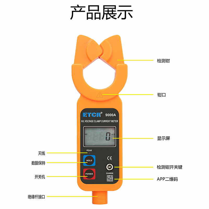 ETCR9000A藍(lán)牙版高低壓鉗形電流表又稱架空線路負(fù)載測(cè)試儀,高壓負(fù)載測(cè)試儀、高空電流測(cè)試儀、高壓電流遙測(cè)儀,用于測(cè)量架空線路高低壓電流。儀表由專(zhuān)用鉗形電流表配高壓絕緣桿組成。若不使用絕緣桿,還可以當(dāng)作高精度低壓鉗形電流表使用。廣泛應(yīng)用于變電站﹑發(fā)電廠﹑工礦企業(yè)以及檢測(cè)站﹑電工維修部門(mén)進(jìn)行電流檢測(cè)和野外電工作業(yè)等。