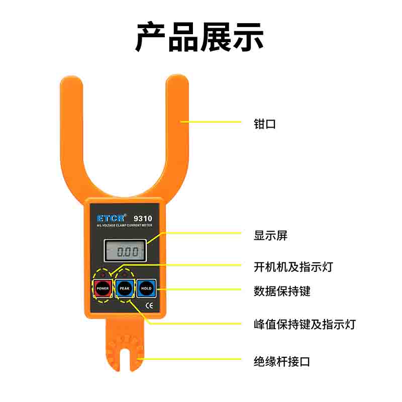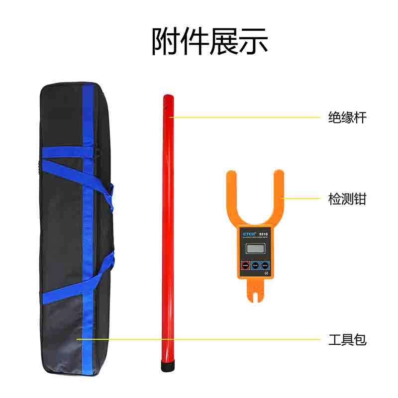 ETCR9310大口徑高低壓叉形電流表由專用大口徑叉形電流表配高壓絕緣桿組成。用于110kV以下測(cè)試需帶絕緣桿操作,在600V以下可不使用絕緣桿,直接使用叉形電流表測(cè)試。,儀表還具有數(shù)據(jù)保持、數(shù)據(jù)存儲(chǔ)等功能。