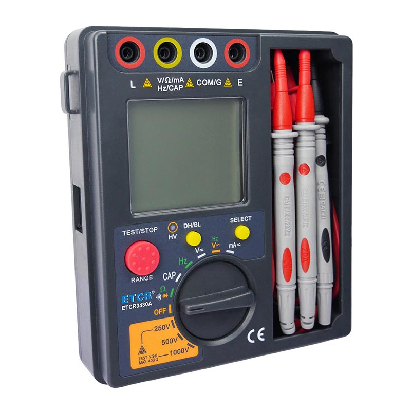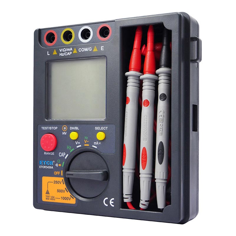 | ETCR3430B高壓絕緣電阻萬用表 | 500V/1000V/2500V | 0.5MΩ~50GΩ | 1mA MAX | DC:0V~1000V | AC:0V~700V | 0nF~40mF |