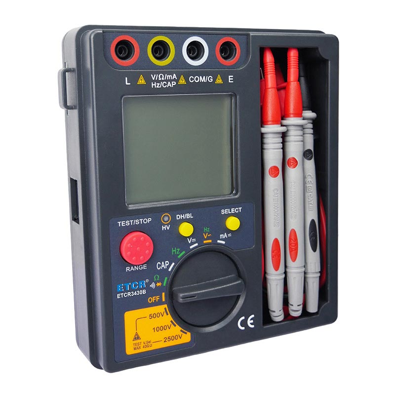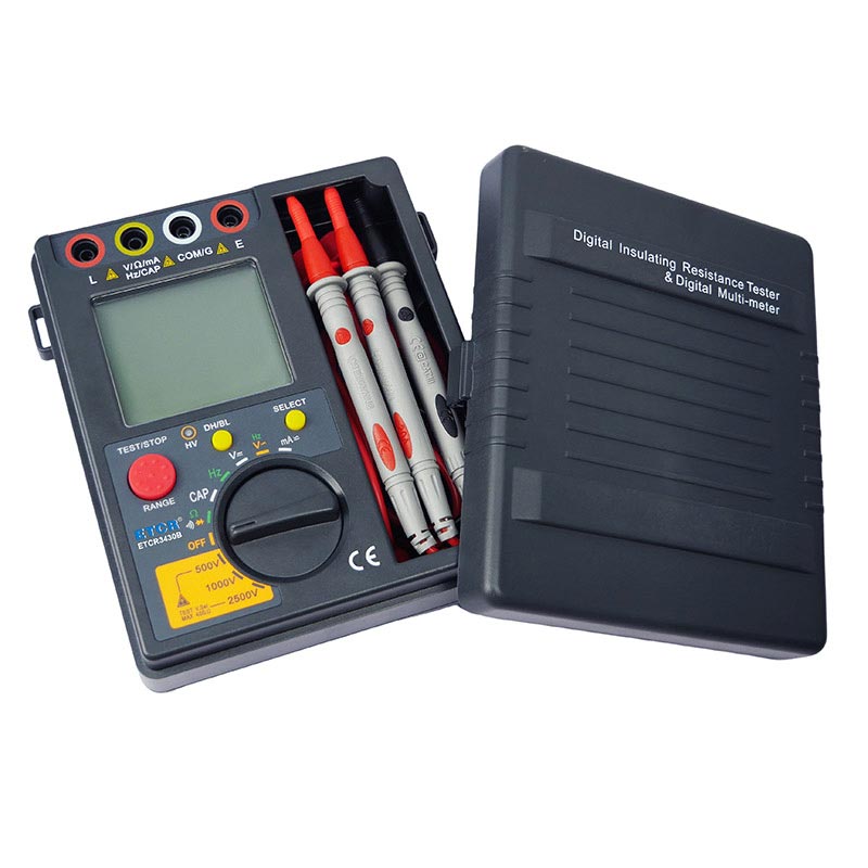 | ETCR3430B高壓絕緣電阻萬(wàn)用表 | 500V/1000V/2500V | 0.5MΩ~50GΩ | 1mA MAX | DC:0V~1000V | AC:0V~700V | 0nF~40mF |