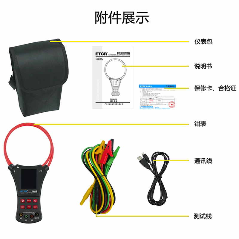| ETCR7350B柔性鉗形功率表 | AC 0.0A~6000A | 0.00V~600V | 0.0°~360° | Φ300mm | 200組 |