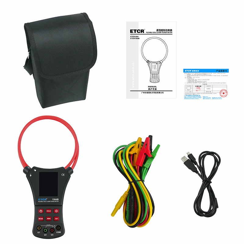ETCR7350B柔性鉗形功率表又名羅氏線圈功率表、洛氏線圈功率表,用于現(xiàn)場(chǎng)測(cè)量三相交流電壓、電流、電壓間相位、電壓電流間相位、頻率、相序、電能、有功功率、無功功率、視在功率、功率因數(shù)、總功率等電能參數(shù)。還能用于判別變壓器接線組別、感性、容性電路,讀出差動(dòng)保護(hù)各組CT之間的相位關(guān)系,檢查電度表的接線正確與否,檢修線路設(shè)備等,為用電檢查人員提供一種安全、準(zhǔn)確、便捷的新型電力儀表。