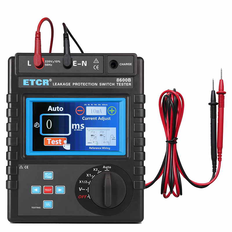 | ETCR8600B漏電保護(hù)器測試儀 | 5mA~1000mA,十六檔 | 0ms~999ms | AC 0~600V | 觸摸彩屏 | 鋰電池 |