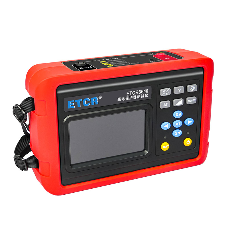 ETCR8640漏電保護(hù)器測試儀采用4.3寸彩屏。輸出電流、動(dòng)作時(shí)間、電池電量、相位等同屏顯示,具有自動(dòng)關(guān)機(jī)、相位選擇、背光選擇等功能,儀表操作簡便,精度高、體積小、重量輕、外觀精致,便于攜帶,是各種漏電保護(hù)器現(xiàn)場或室內(nèi)檢測的理想工具。