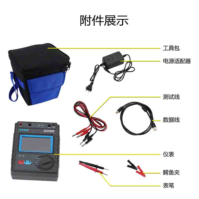 | 絕緣電阻測(cè)試功能 | 絕緣電阻(Mohm)、極化指數(shù)(PI)、吸收比(DAR)測(cè)試 |