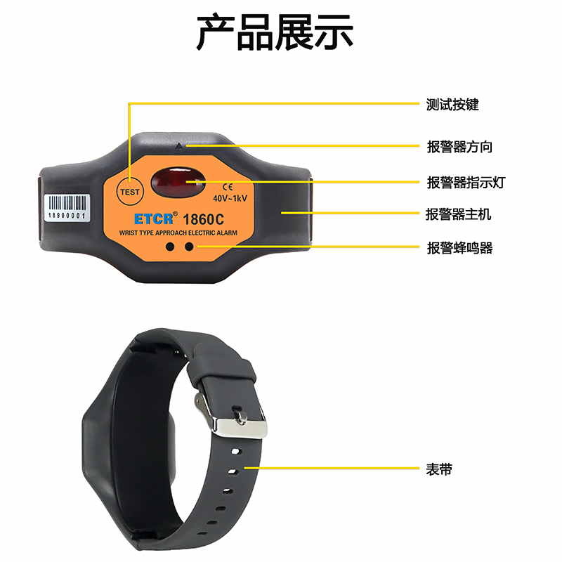 | ETCR1860C手腕式低壓近電報警器 | 40V~1kV | 約12個月 | IP54 | 聲光報警 |