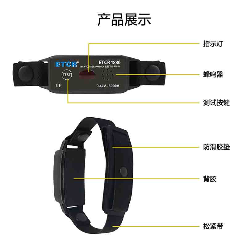| ETCR1860C手腕式低壓近電報警器 | 40V~1kV | 約12個月 | IP54 | 聲光報警 |