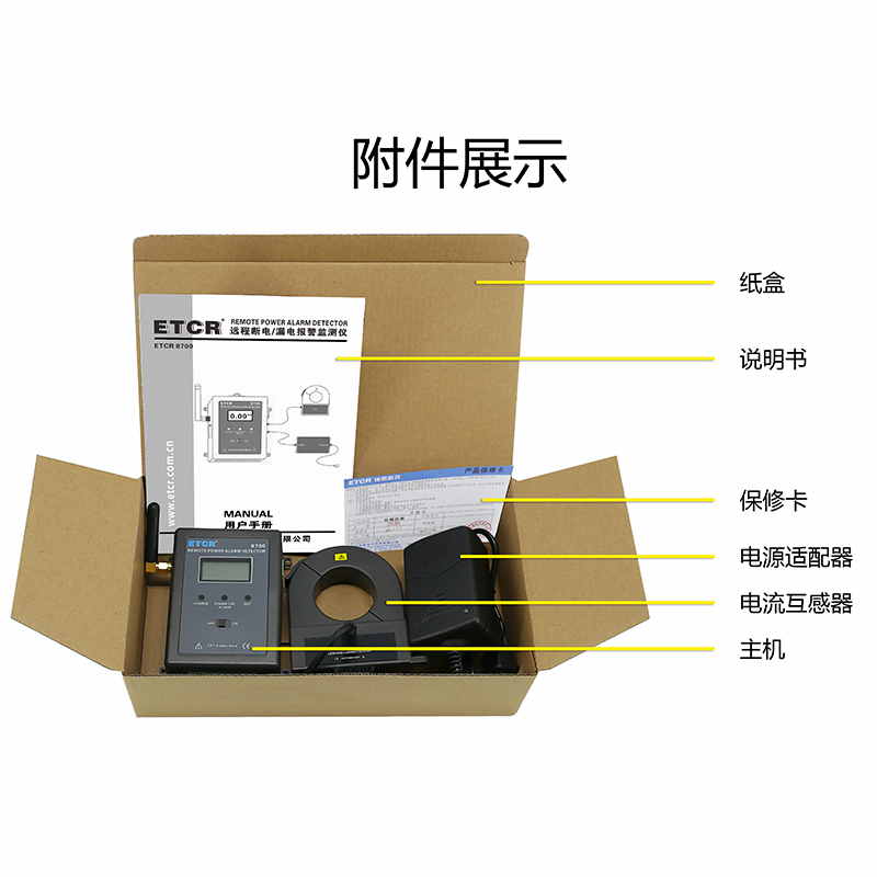 ETCR 8700遠(yuǎn)程斷電/漏電報警監(jiān)測儀又稱在線斷電報警器,用于需要無人值守和遠(yuǎn)程在線報警監(jiān)測斷電、恢復(fù)供電、漏電的工控現(xiàn)場,屬工業(yè)級4G報警監(jiān)控儀,也可以當(dāng)防盜報警器使用。監(jiān)測儀由電腦、電流傳感器、GPRS模塊、上位機軟件、電源適配器等組成。內(nèi)置GPRS模塊,用戶只需通過自己電腦服務(wù)器設(shè)置幾個簡單參數(shù),就可以隨時監(jiān)測遠(yuǎn)程設(shè)備是否斷電、是否恢復(fù)供電、是否有漏電等報警信息;也可以通過輸入擴展口接入溫度、濕度、人體紅外感應(yīng)器等傳感器;還可以通過輸出擴展口控制遠(yuǎn)程的繼電器等其他設(shè)備。廣泛適用于安防、電力設(shè)備、銀行、電信、工廠、鐵路、機房、不間斷電源、生物制藥、倉庫、藥房、重要機械設(shè)備、24小時運轉(zhuǎn)的生產(chǎn)線等各種需要斷電報警、漏電監(jiān)測報警、遠(yuǎn)程控制啟停等場所。