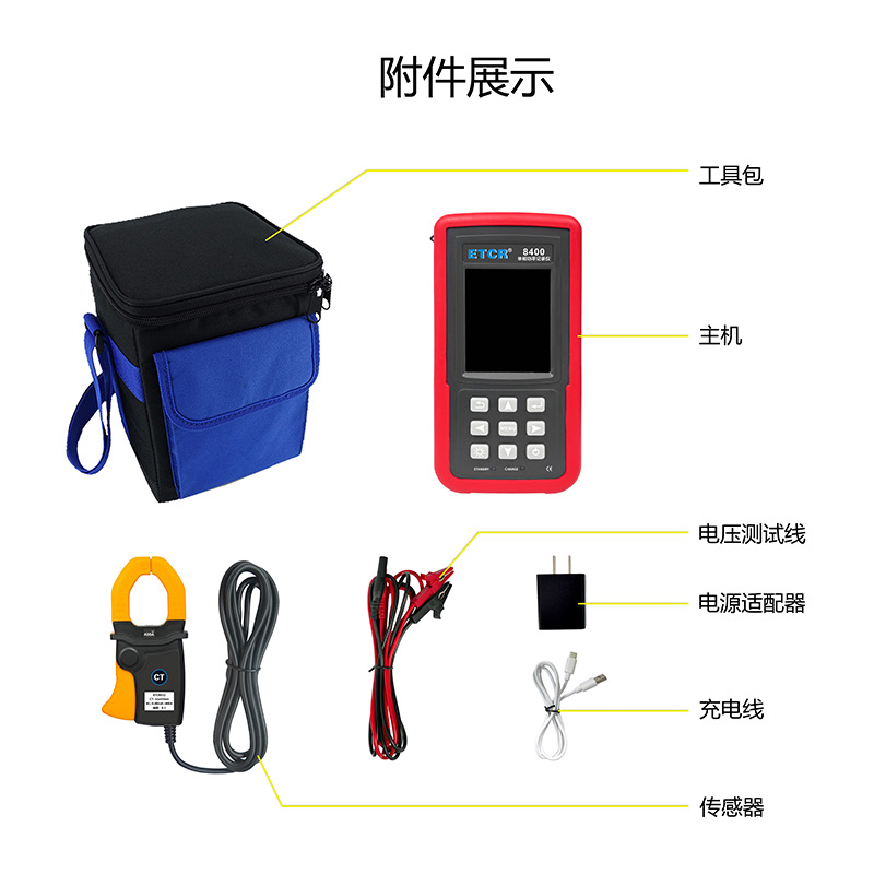 隨機附件 | 主機1件;互感器1個(ETCR8400)/3個(ETCR8430);電壓輸入線2條(ETCR8400)/4條(ETCR8430);數(shù)據(jù)線1個;電源適配器1個;工具包1件 |