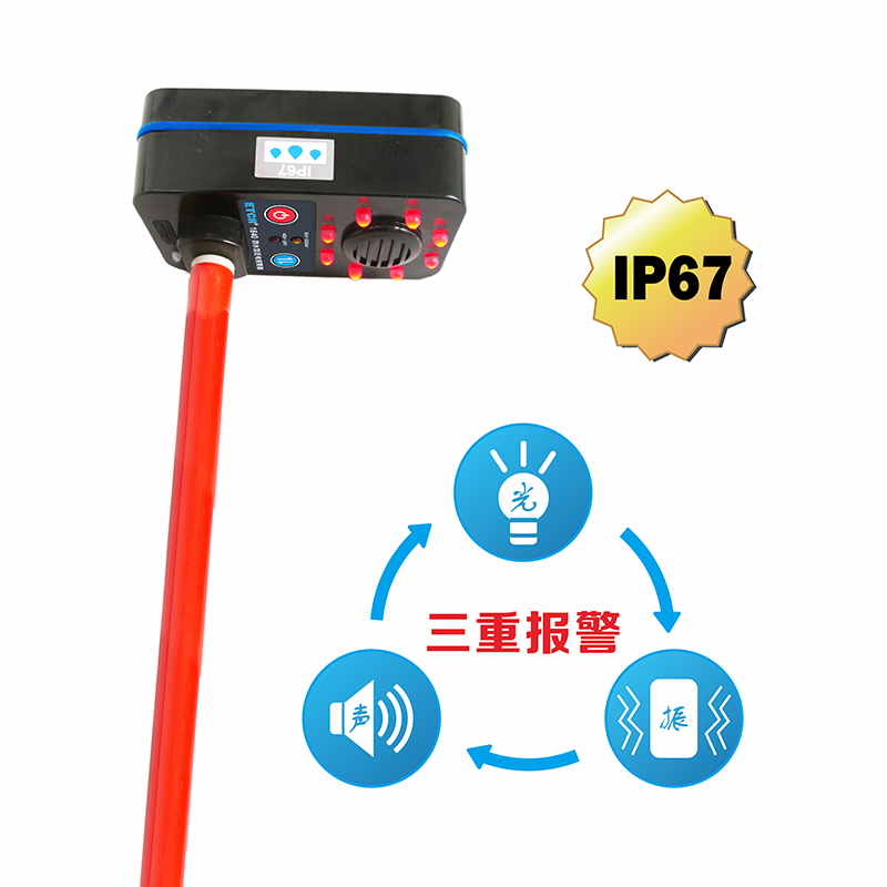 2、防護(hù)等級IP67,可用于水體驗(yàn)電報警(需使用低壓檔,安裝絕緣桿)。