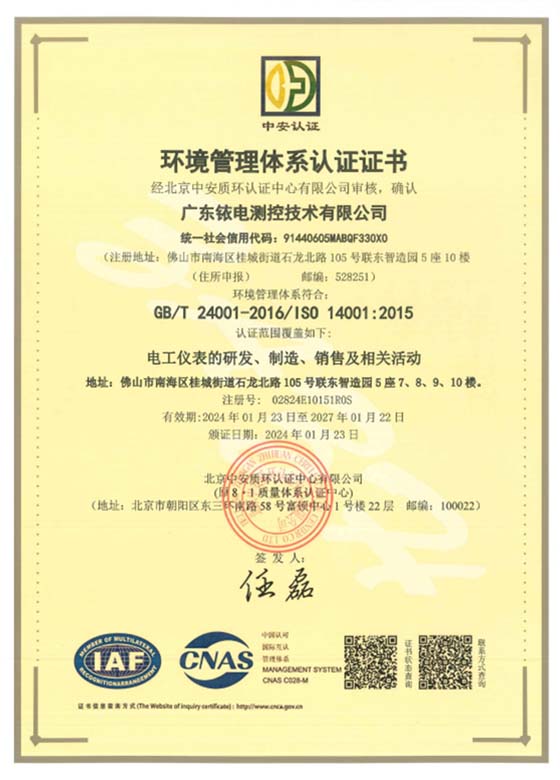 環(huán)境管理體系認(rèn)證證書