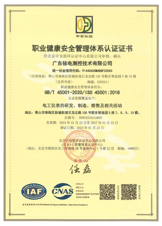 職業(yè)健康安全管理體系認(rèn)證證書