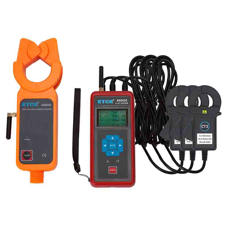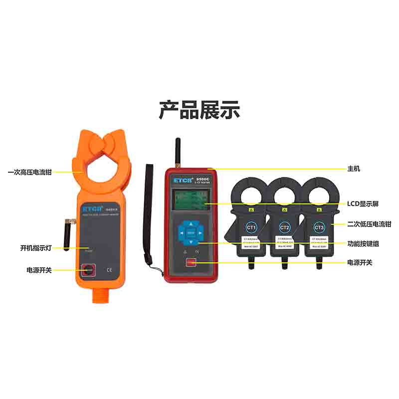 ETCR9500C-030無線高壓CT變比測試儀又稱互感器電流變比測試儀、互感器比差測試儀、電流互感器變比測試儀,用于35kV以下電流互感器的一次電流、二次電流大小、變比,相別、極性判斷。儀器采用3個(gè)二次低壓電流鉗(口徑25mm×30mm)同時(shí)測試低壓線路,可直接確定高壓端與低壓端的對(duì)應(yīng)相位關(guān)系,無需多次鉗測。廣泛應(yīng)用于變電站﹑發(fā)電廠﹑電力稽查部門、工礦企業(yè)以及檢測站﹑電工維修部門進(jìn)行電流檢測、反竊電及野外電工作業(yè)等。